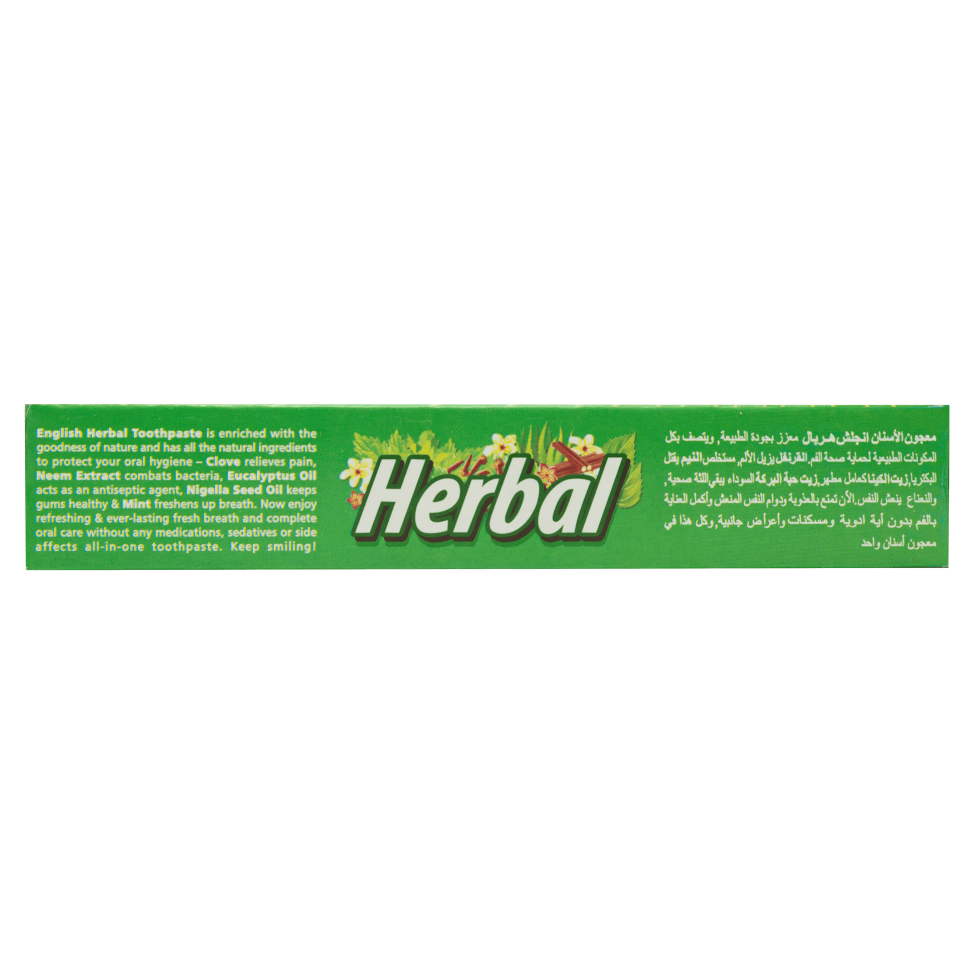 English Herbal Toothpaste is a mixture of Herbs which helps your teeth to stay clean and healthy , and keeps your mouth fresh.
